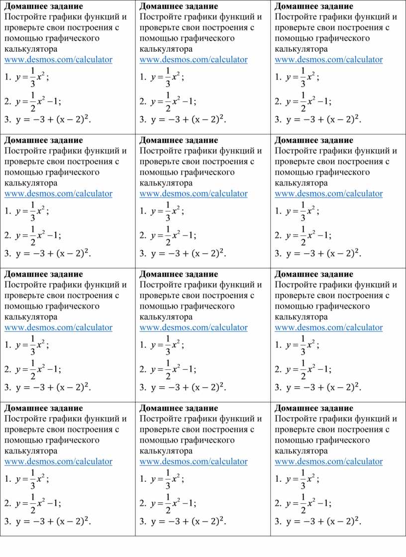 Домашнее задание Постройте графики функций и проверьте свои построения с помощью графического калькулятора www.desmos.com/calculator 1.