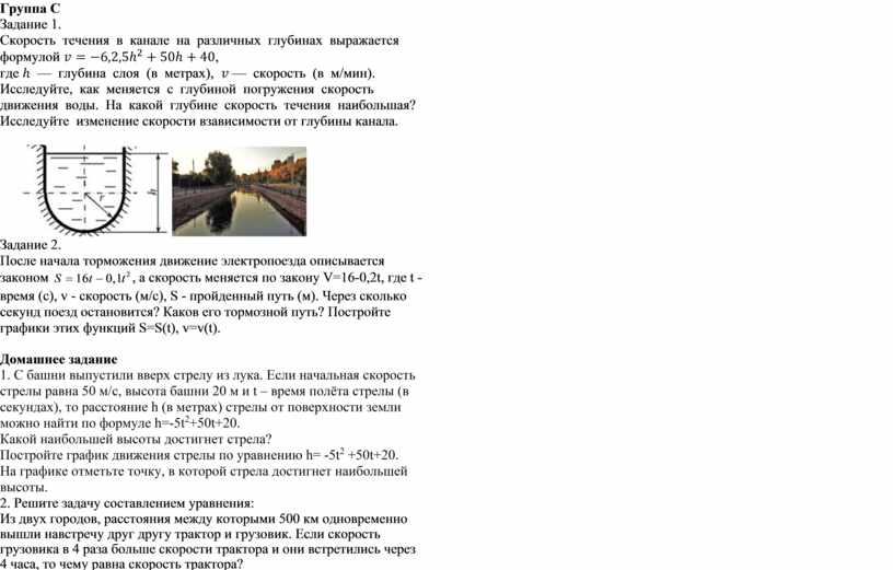 скорость движения воды. На какой глубине скорость течения наибольшая?