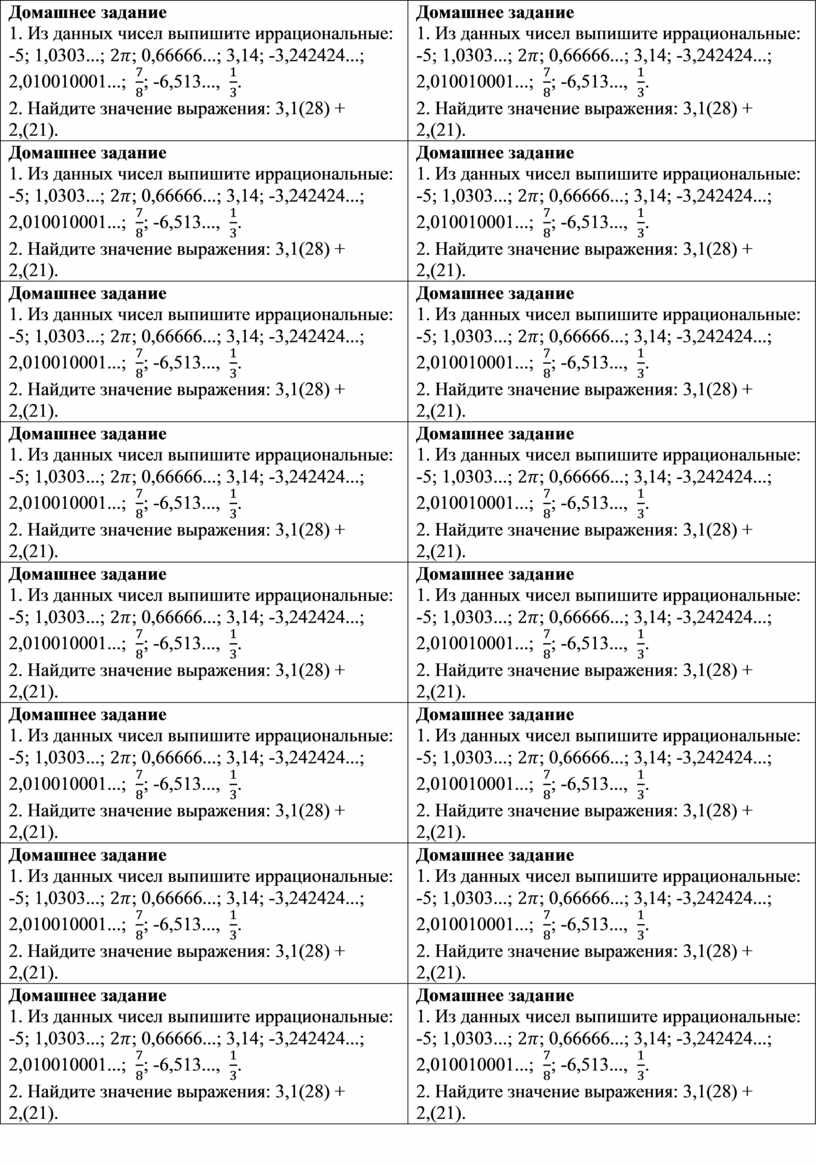 Домашнее задание 1. Из данных чисел выпишите иррациональные: -5;