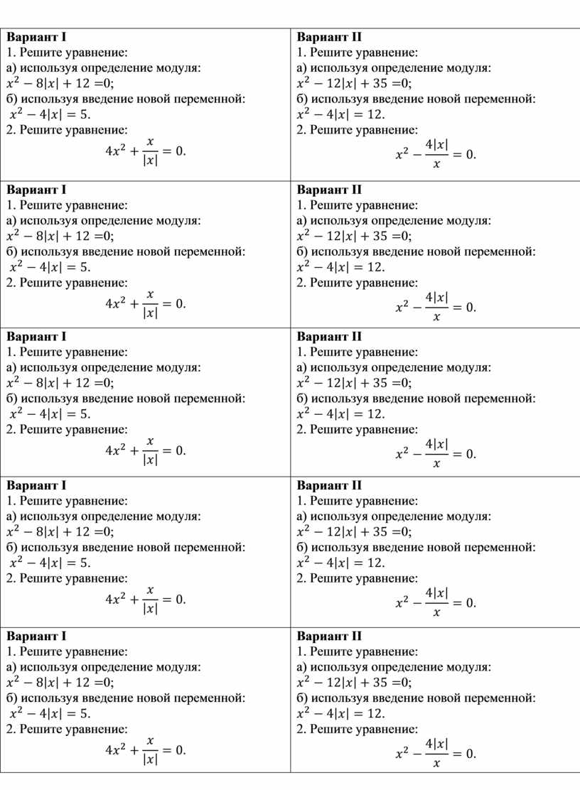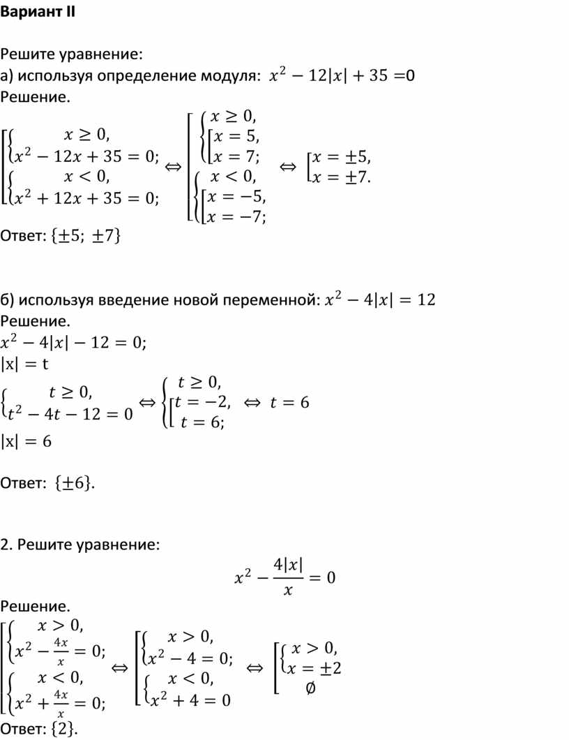 Вариант ІІ 1. Решите уравнение: а) используя определение модуля: