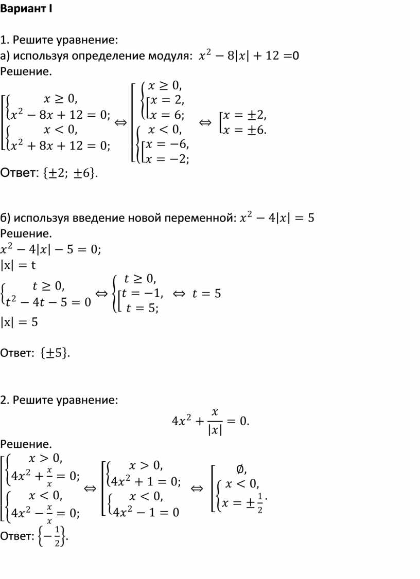 Вариант І 1. Решите уравнение: а) используя определение модуля: