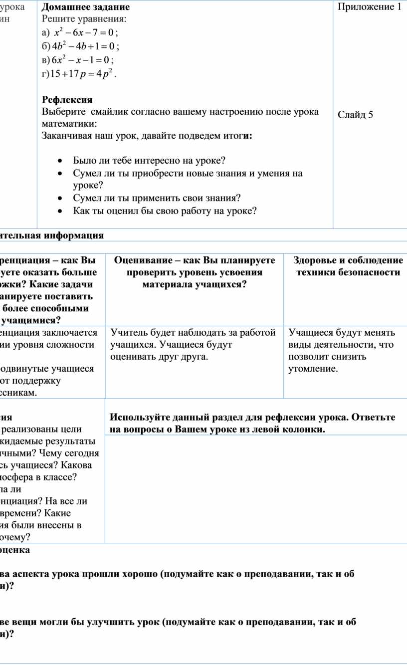 Какие два аспекта урока прошли хорошо (подумайте как о преподавании, так и об изучении)? 1: 2: Какие две вещи могли бы улучшить урок (подумайте как о преподавании, так и об изучении)? 1: 2: Что я узнал(а) за время урока о классе или отдельных учениках такого, что поможет мне подготовиться к следующему уроку?