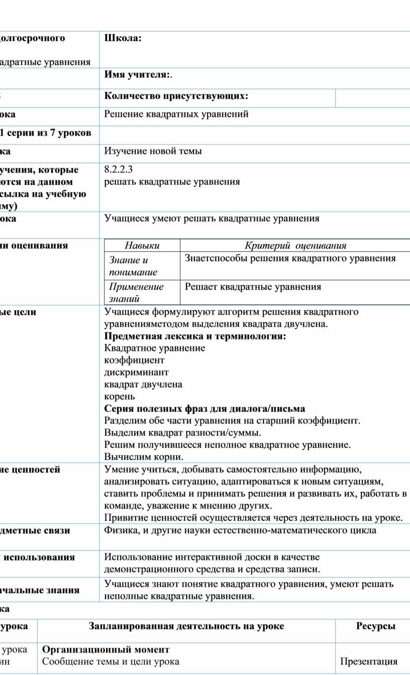 8.2.2.3 решать квадратные уравнения |