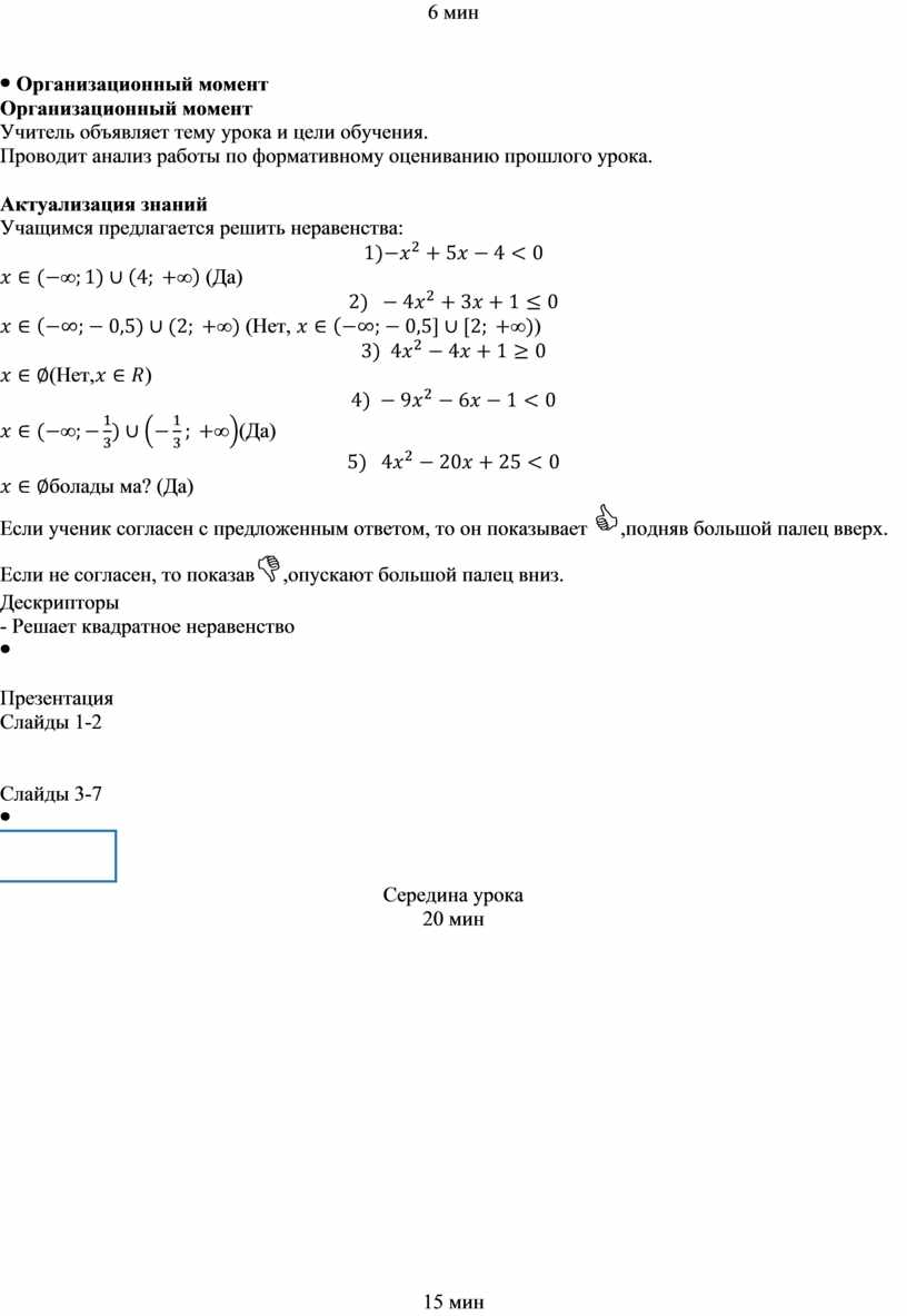 Учащиеся умеют решать квадратные и целые рациональные неравенства. |