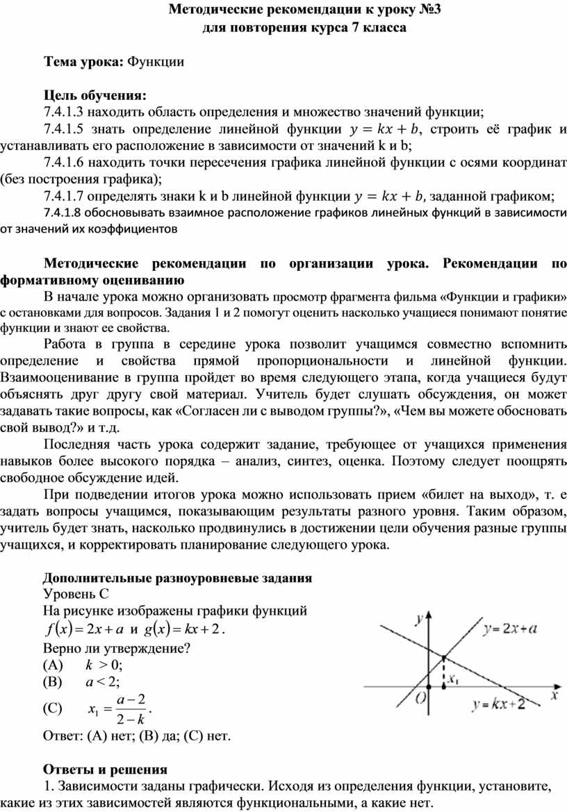 7.4.1.8 обосновывать взаимное расположение графиков линейных функций в зависимости от значений их коэффициентов