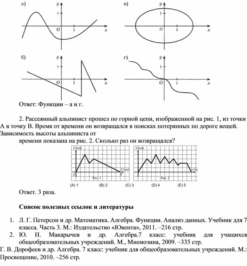 1. Л. Г. Петерсон и др. Математика. Алгебра. Функции. Анализ данных. Учебник для 7 класса. Часть 3. М.: Издательство «Ювента», 2011. ‒216 стр.