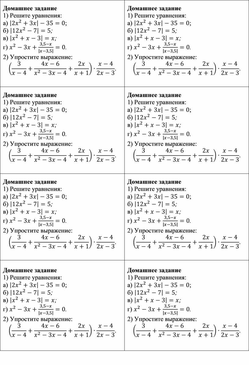 Домашнее задание 1) Решите уравнения: а) б) в) г) 2) Упростите выражение: