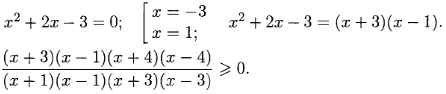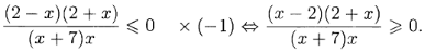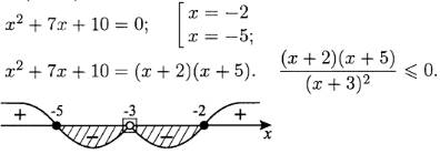 Если в нестрогом неравенстве х = а есть корень в разложении числителя и знаменателя, то он обязательно исключается из решения, т.е. обозначается полым кружочком. В данном случае он еще четной кратности.
