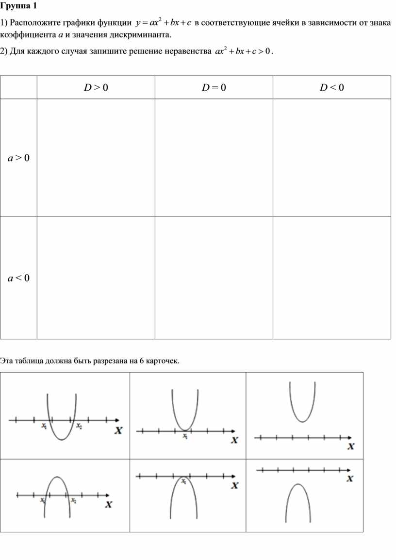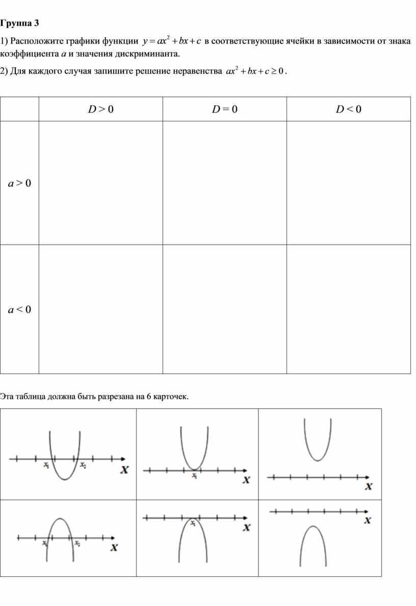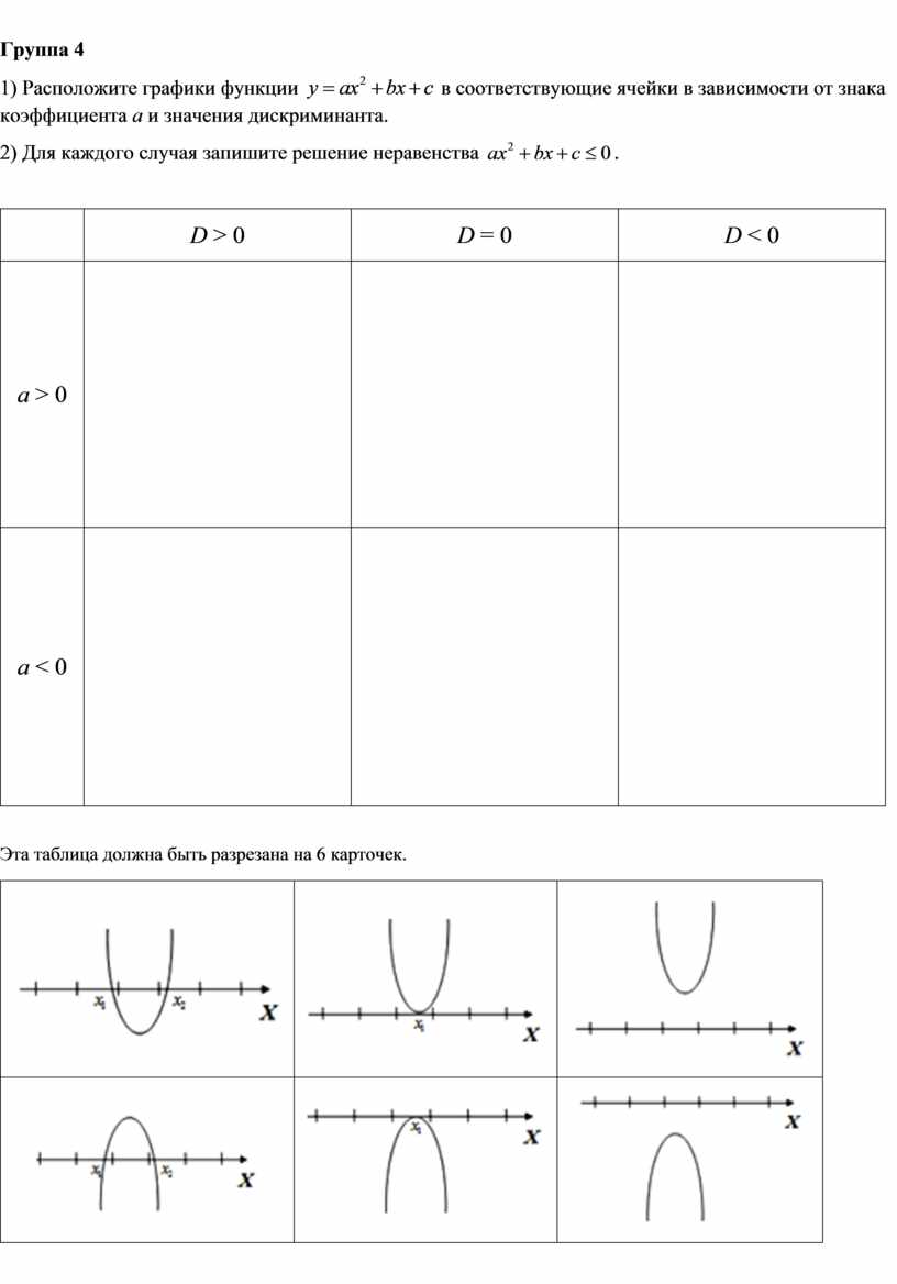 в зависимости от знака коэффициента а и значения дискриминанта.