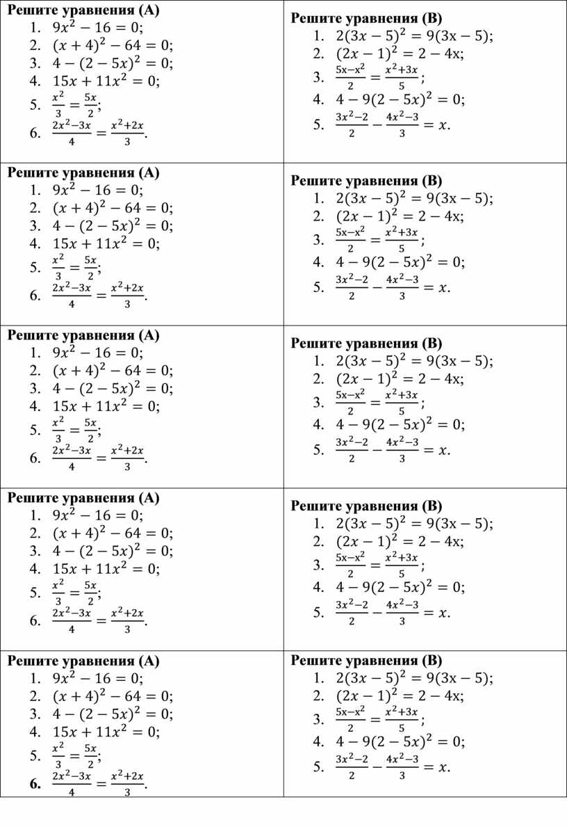 Решите уравнения (А) 1. 2. 3. 4. 5. 6. |
