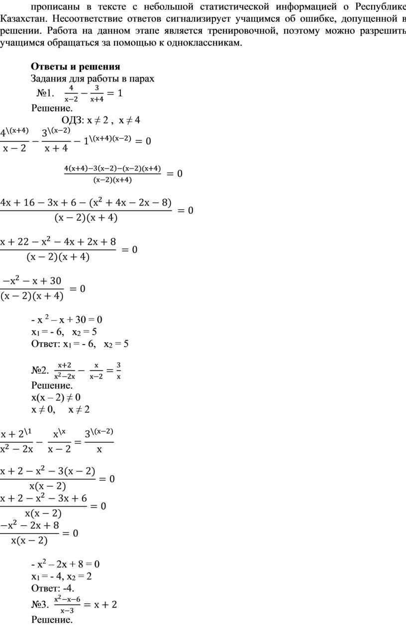 Задания на закрепление новых знаний выполняются в парах и самостоятельно. Учитель будет обходить класс, предоставляя учащимся устные отзывы об их работах. Также у учащихся будет возможность самостоятельно проверять свои ответы: они прописаны в тексте с небольшой статистической информацией о Республике Казахстан. Несоответствие ответов сигнализирует учащимся об ошибке, допущенной в решении. Работа на данном этапе является тренировочной, поэтому можно разрешить учащимся обращаться за помощью к одноклассникам.
