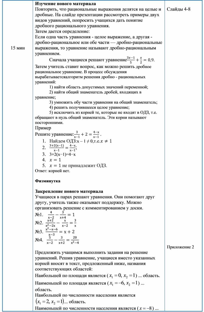 Учащиеся знают способы действий, приводящие дробно–рациональные уравнения к квадратным, решают дробно–рациональные уравнения. |
