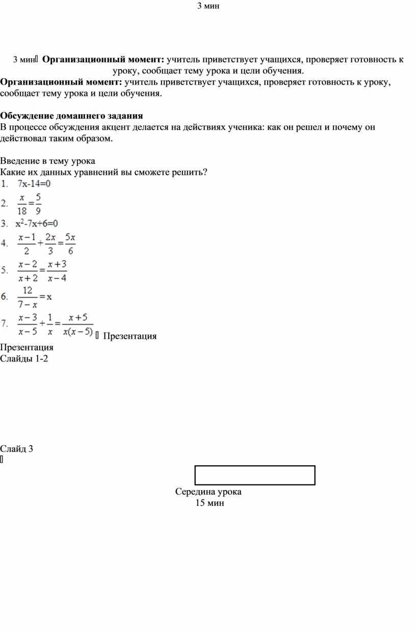 Учащиеся умеют решать квадратные уравнения, умеют выполнять действия с алгебраическими дробями. |