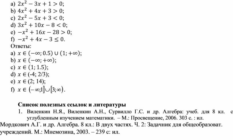 1. Виленкин Н.Я., Виленкин А.Н., Сурвилло Г.С. и др. Алгебра: учеб. для 8 кл. с углубленным изучением математики. – М.: Просвещение, 2006. 303 с. : ил.