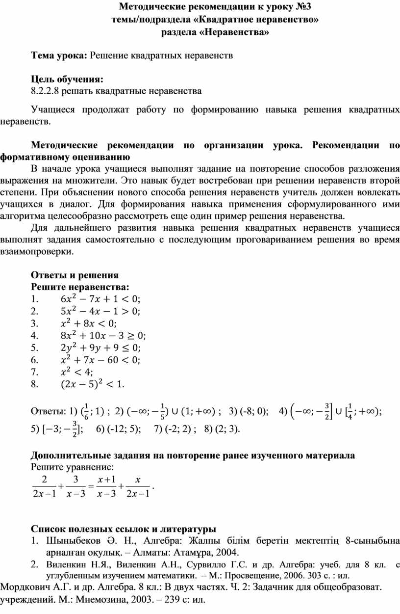 1. Шыныбеков Ә. Н., Алгебра: Жалпы білім беретін мектептің 8-сыныбына арналған оқулық. – Алматы: Атамұра, 2004.