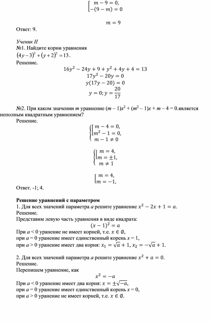 №2. При каком значении m уравнение 2х2 - ( 9 - m )x + m – 9 = 0 является неполным квадратным уравнением?