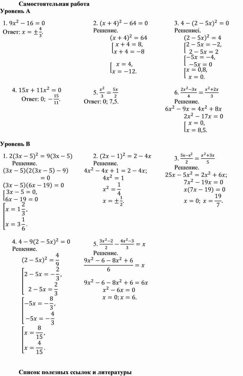 Задания для самостоятельной работы разработаны в двух уровнях сложности, уровнем А должны владеть все учащиеся, уровень В – сложнее.