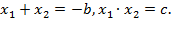 Старший коэффициент равен 1. Тогда по теореме Виета имеем: