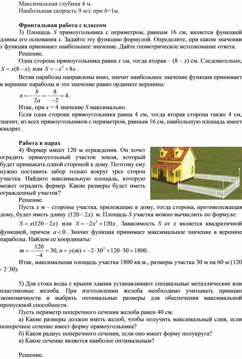 На данном уроке учащиеся продолжат работу по развитию навыка решения задач с использованием квадратичной функции.