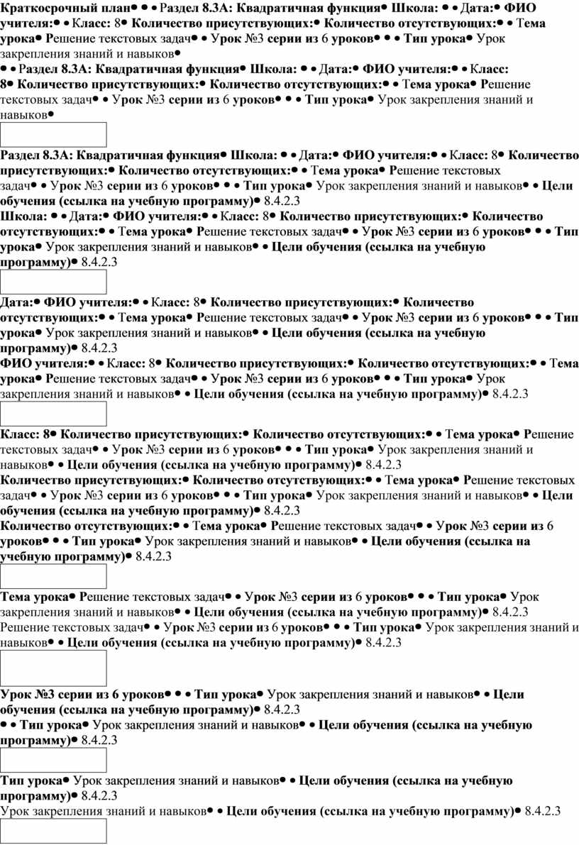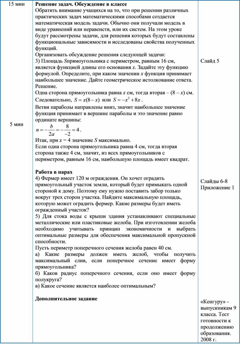 8.4.2.3 использовать квадратичную функцию для решения прикладных задач; 8.4.3.1 составлять математическую модель по условию задачи |