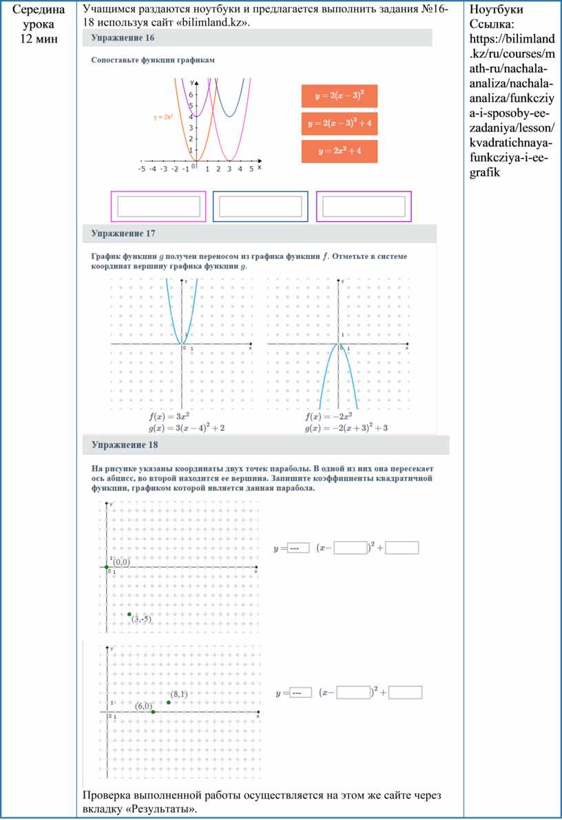 Ноутбуки Ссылка: https://bilimland.kz/ru/courses/math-ru/nachala-analiza/nachala-analiza/funkcziya-i-sposoby-ee-zadaniya/lesson/kvadratichnaya-funkcziya-i-ee-grafik