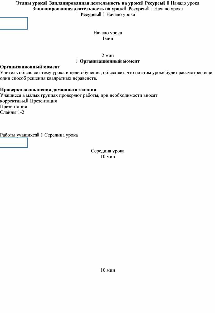 Организационный момент Учитель объявляет тему урока и цели обучения, объясняет, что на этом уроке будет рассмотрен еще один способ решения квадратных неравенств.