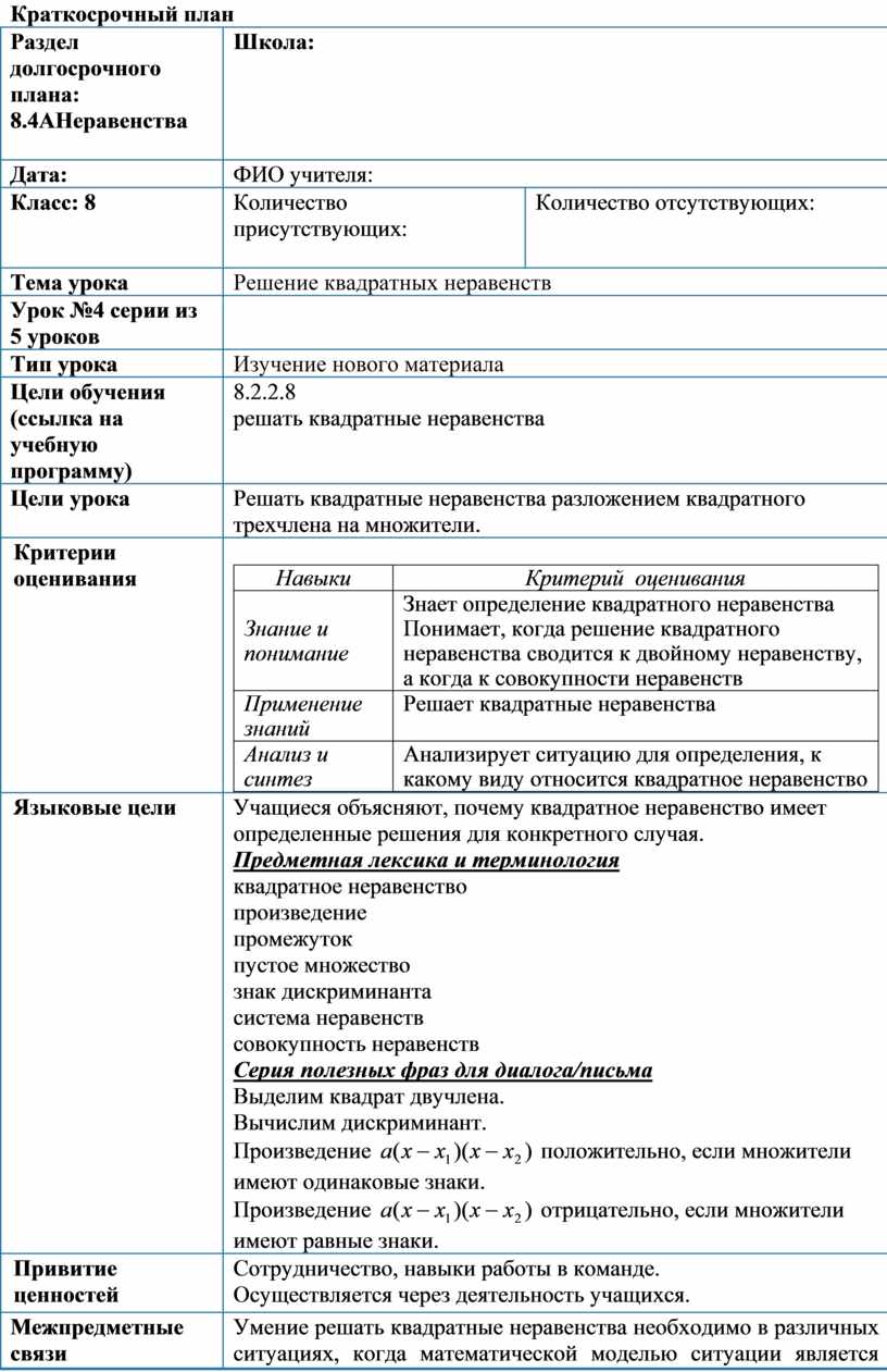 Учащиеся умеют решать линейные неравенства и квадратные уравнения. |