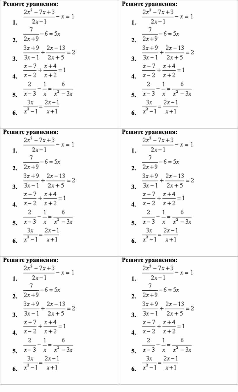 Решите уравнения: 1. 2. 3. 4. 5. 6.