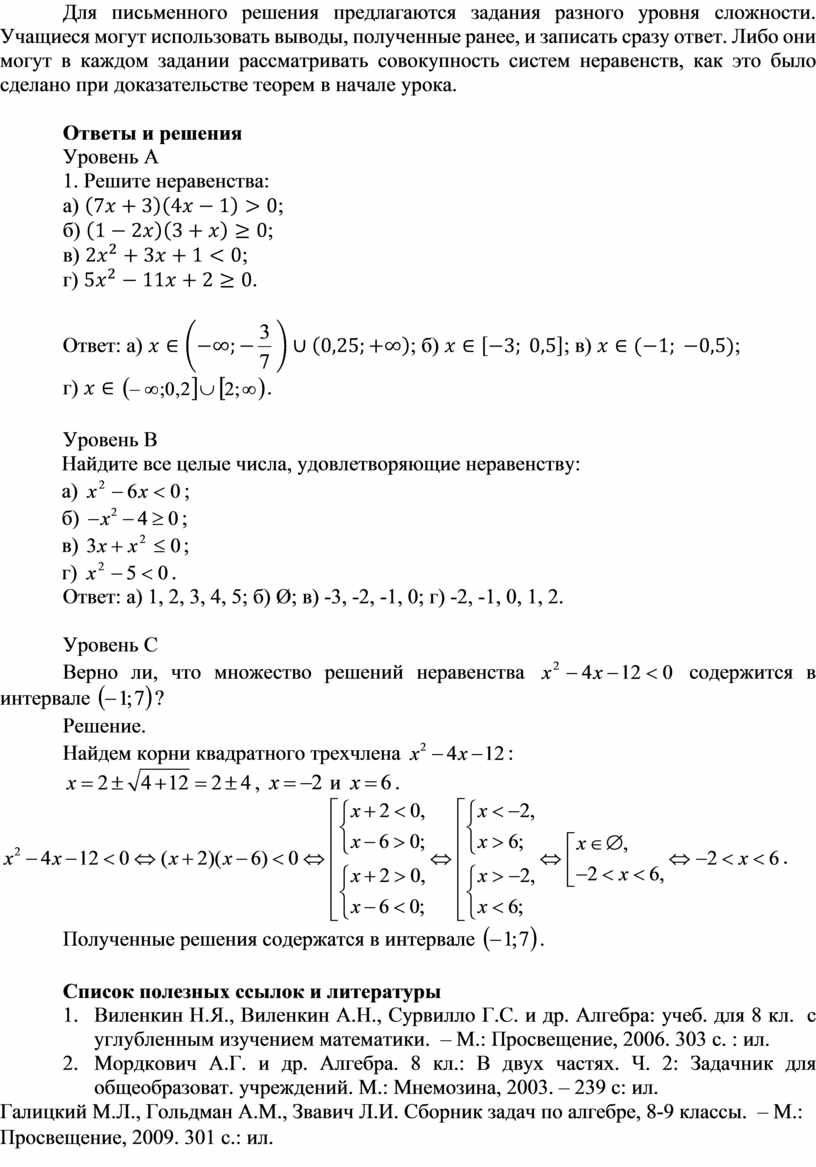 8.2.2.8 решать квадратные неравенства