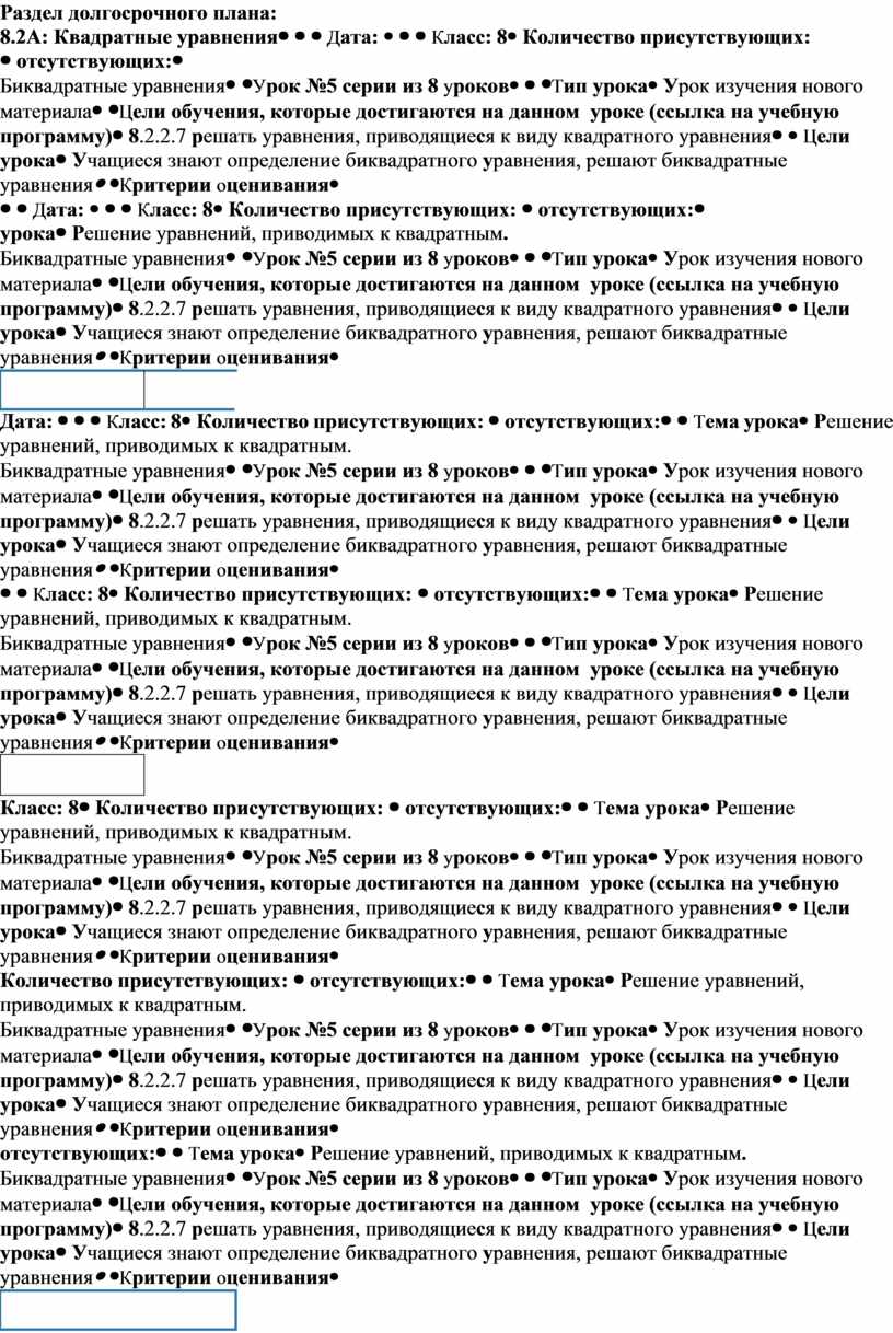 8.2.2.7 решать уравнения, приводящиеся к виду квадратного уравнения |