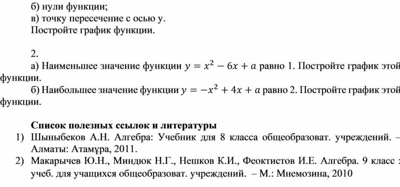2) Макарычев Ю.Н., Миндюк Н.Г., Нешков К.И., Феоктистов И.Е. Алгебра. 9 класс : учеб. для учащихся общеобразоват. учреждений. – М.: Мнемозина, 2010