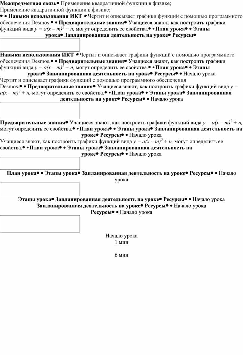 Учащиеся знают, как построить графики функций вида y = a(x – m)2 + n, могут определить ее свойства. |
