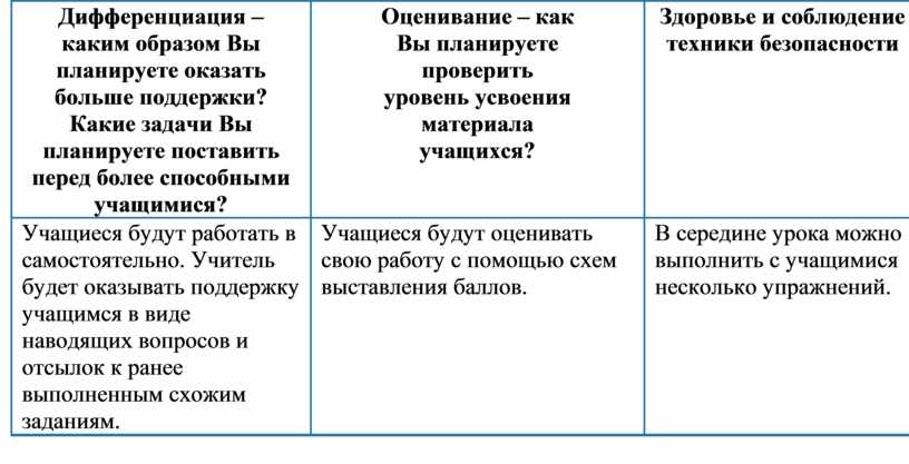 Дифференциация – каким образом Вы планируете оказать больше поддержки? Какие задачи Вы планируете поставить перед более способными учащимися? |