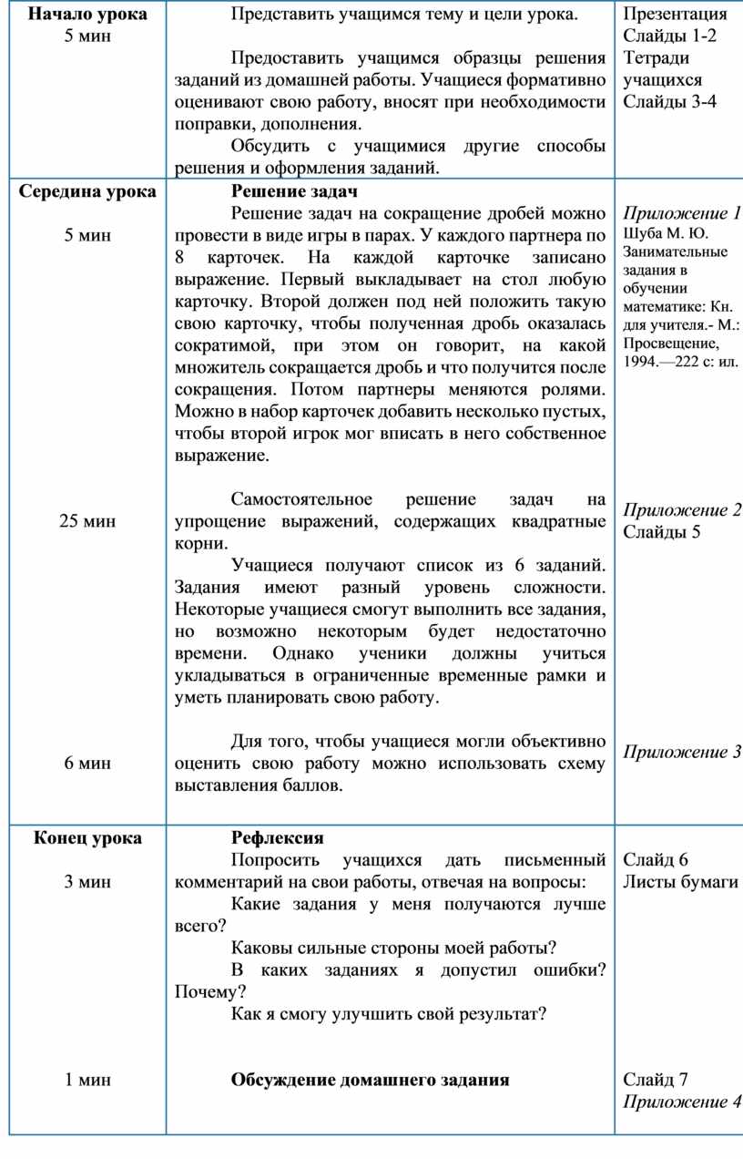 Приложение 1 Шуба М. Ю. Занимательные задания в обучении математике: Кн. для учителя.- М.: Просвещение, 1994.—222 с: ил.