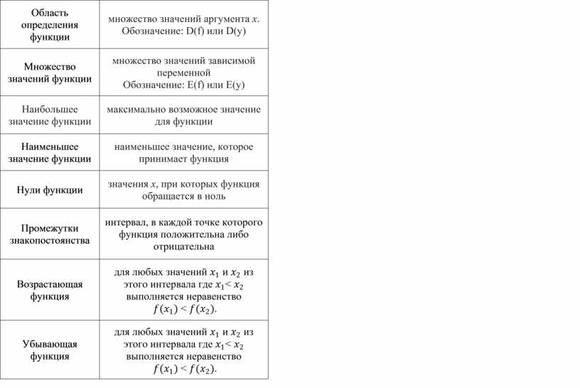 множество значений аргумента x.Обозначение: D(f) или D(у) |