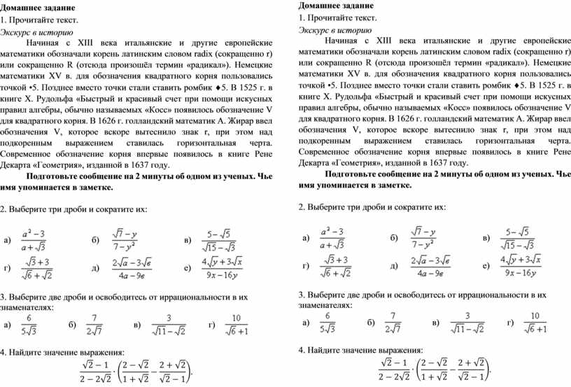 3. Выберите две дроби и освободитесь от иррациональности в их знаменателях: