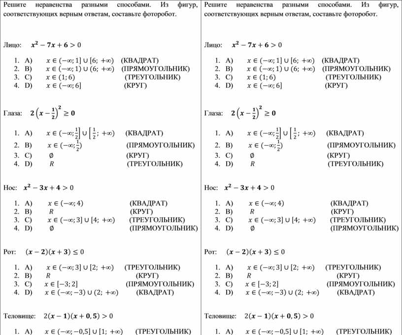 Решите неравенства разными способами. Из фигур, соответствующих верным ответам, составьте фоторобот.
