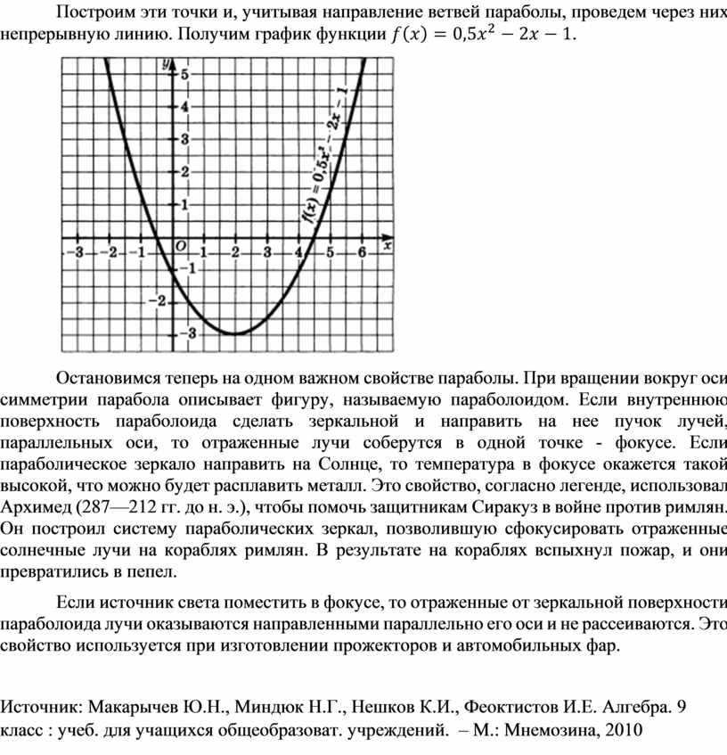 Источник: Макарычев Ю.Н., Миндюк Н.Г., Нешков К.И., Феоктистов И.Е. Алгебра. 9 класс : учеб. для учащихся общеобразоват. учреждений. – М.: Мнемозина, 2010