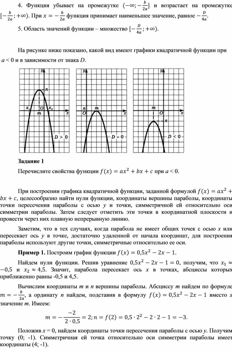 На рисунке ниже показано, какой вид имеют графики квадратичной функции при