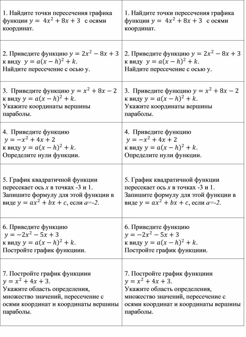 Укажите область определения, множество значений, пересечение с осями координат и координаты вершины параболы. |