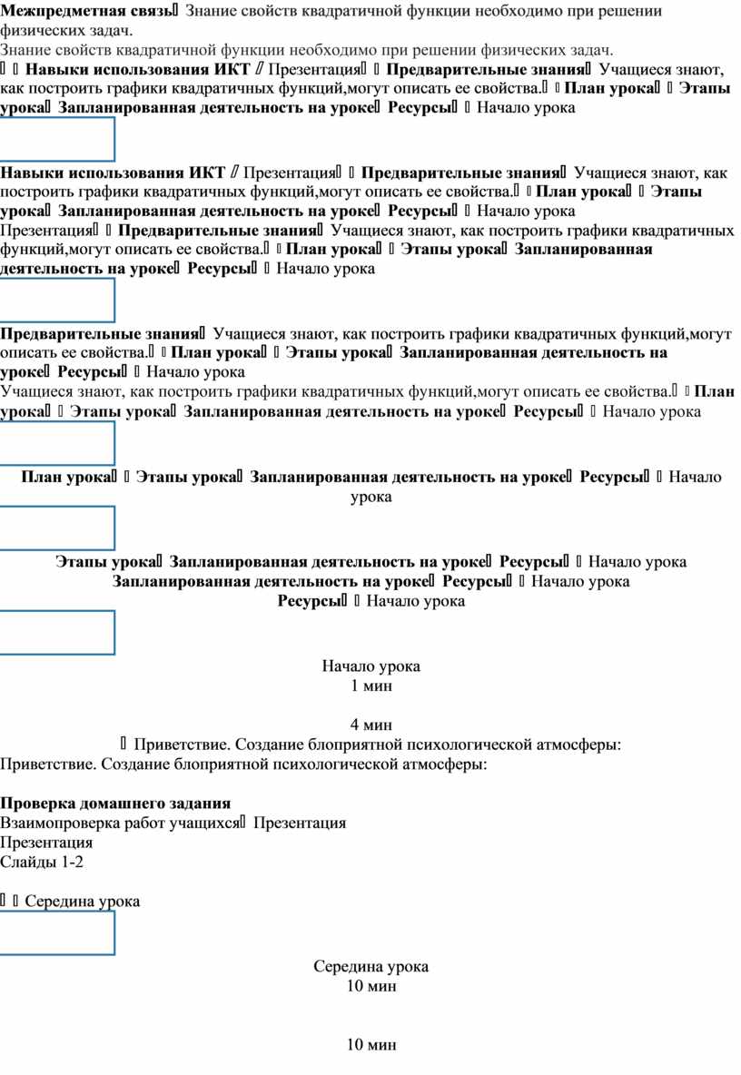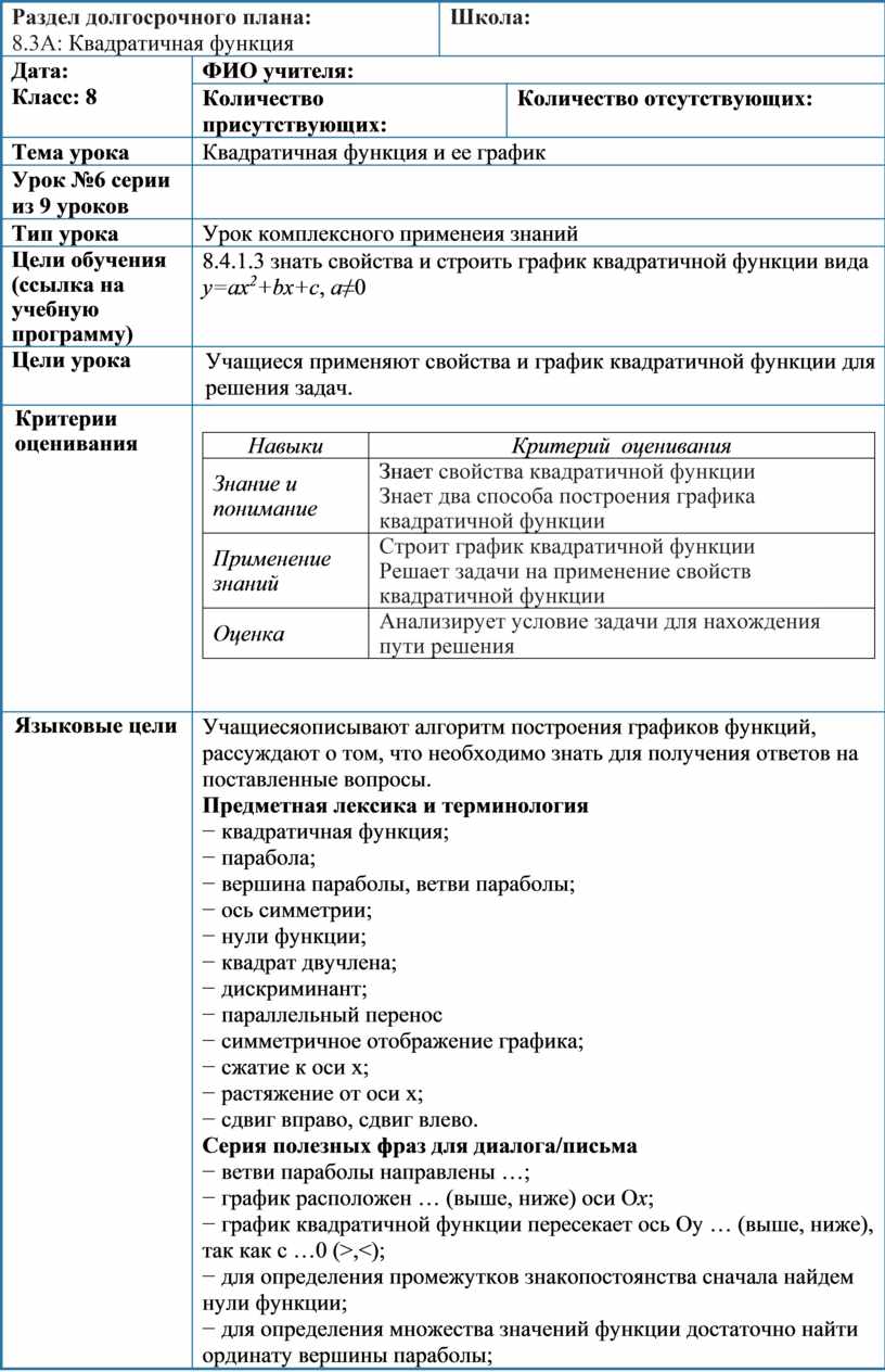 Учащиеся знают, как построить графики квадратичных функций,могут описать ее свойства. |