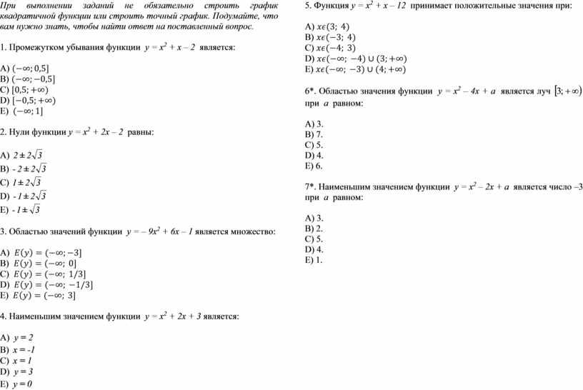 При выполнении заданий не обязательно строить график квадратичной функции или строить точный график. Подумайте, что вам нужно знать, чтобы найти ответ на поставленный вопрос.