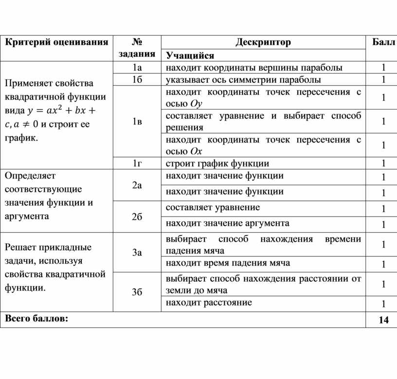 8.4.1.4 находить значения функции по заданным значениям аргумента и находить значение аргумента по заданным значениям функции 8.4.2.3 использовать квадратичную функцию для решения прикладных задач