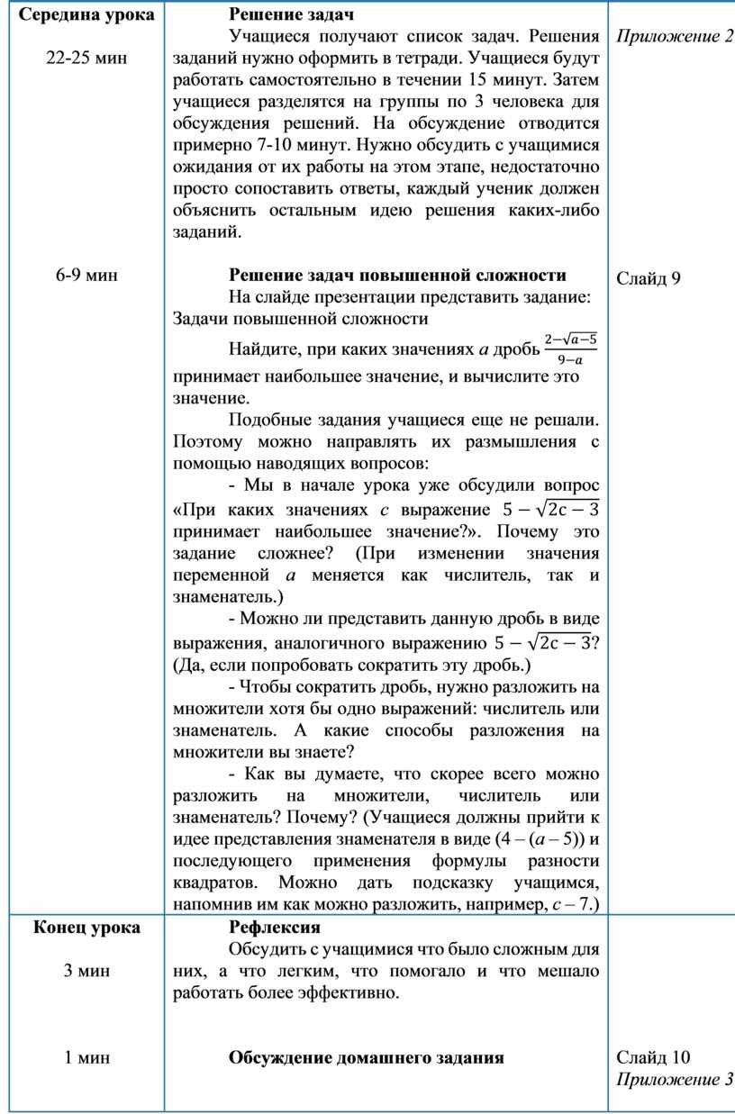 Учащиеся будут оценивать свою работу в процессе обсуждения решений. |