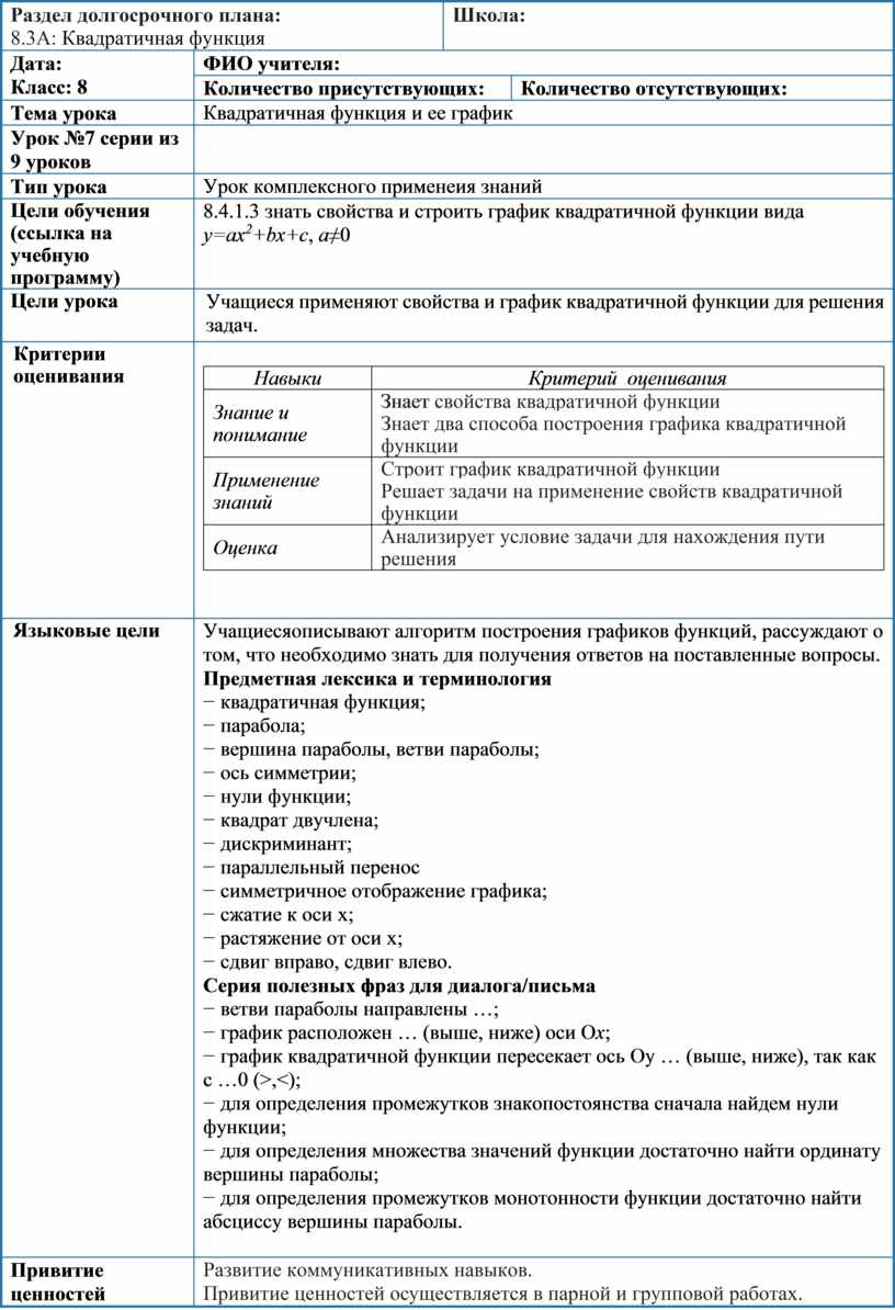 8.4.1.3 знать свойства и строить график квадратичной функции вида y=ax2+bx+c, a≠0 |