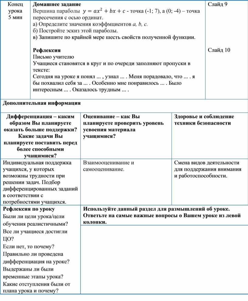 Используйте данный раздел для размышлений об уроке. Ответьте на самые важные вопросы о Вашем уроке из левой колонки. |