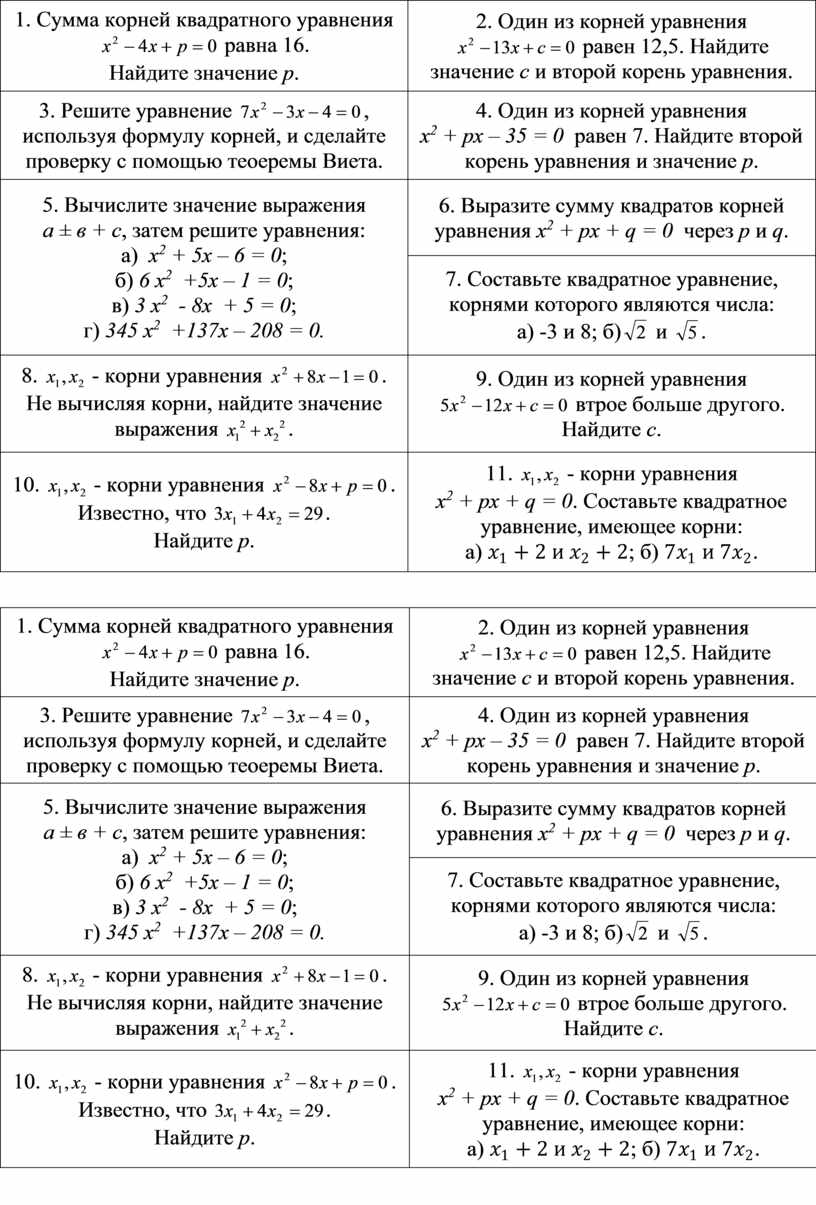 6. Выразите сумму квадратов корней уравнения х2 + рх + q = 0 через р и q. |