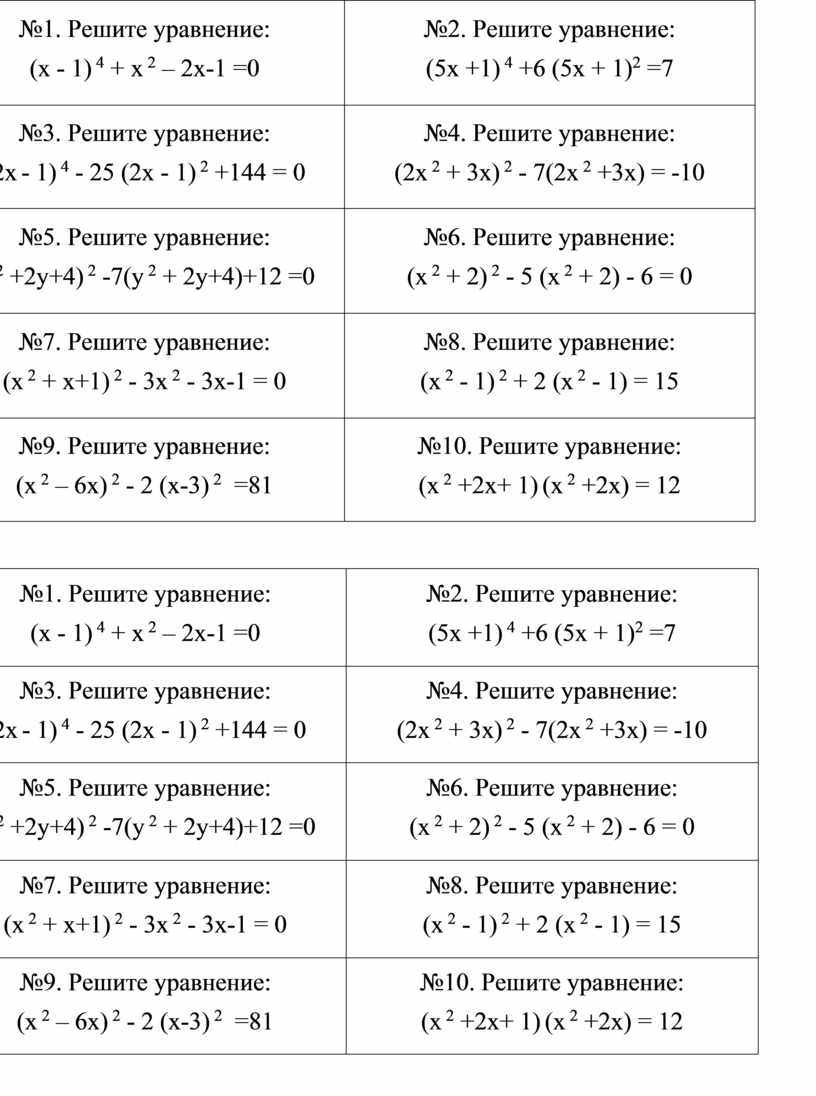 №1. Решите уравнение: (х - 1) 4 + х 2 – 2х-1 =0 |