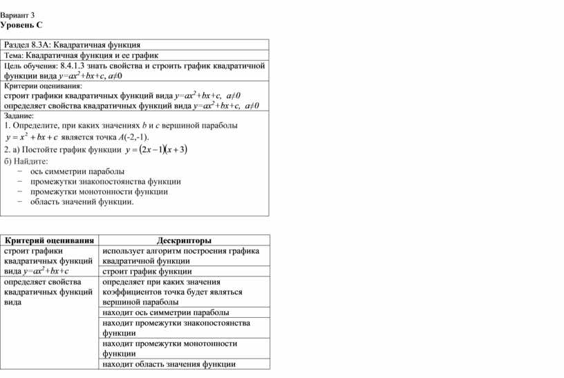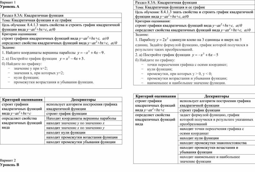 Раздел 8.3А: Квадратичная функция |