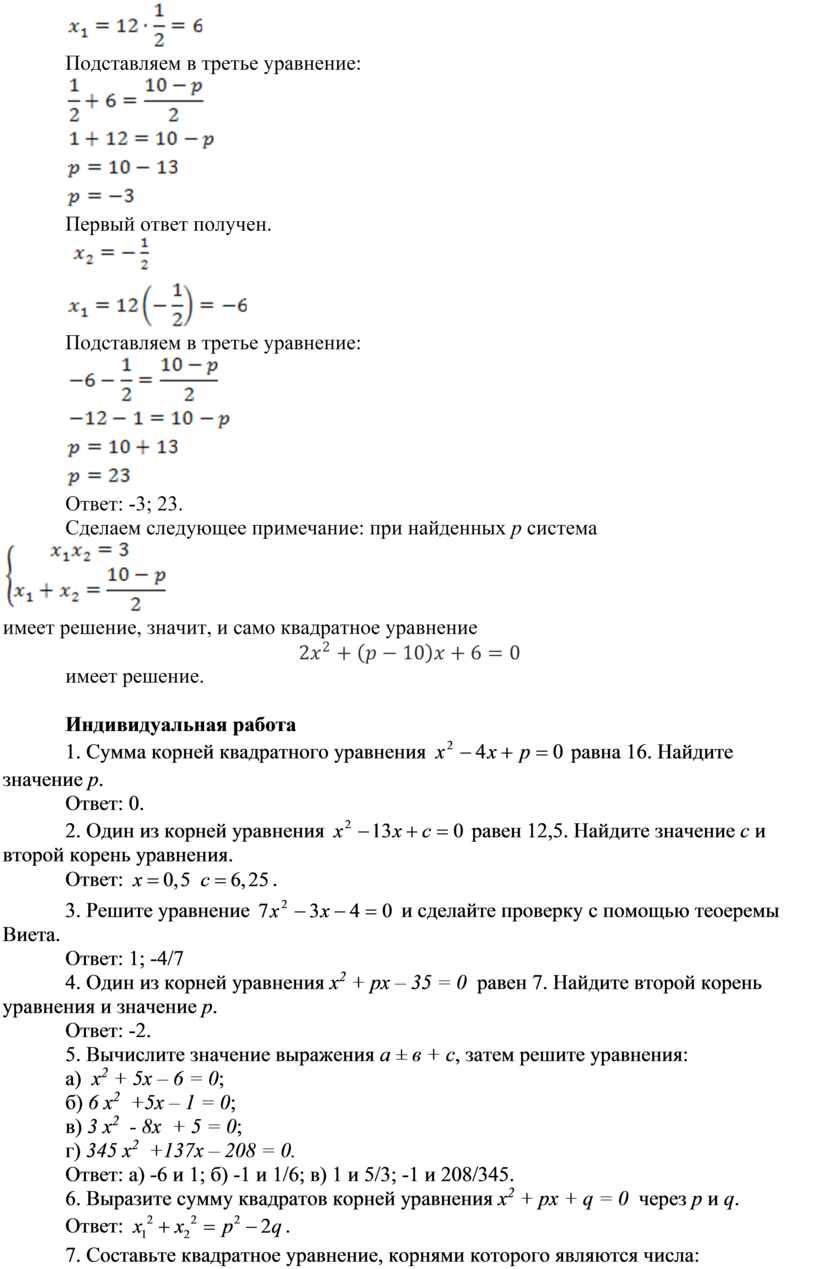 теоеремы Виета.